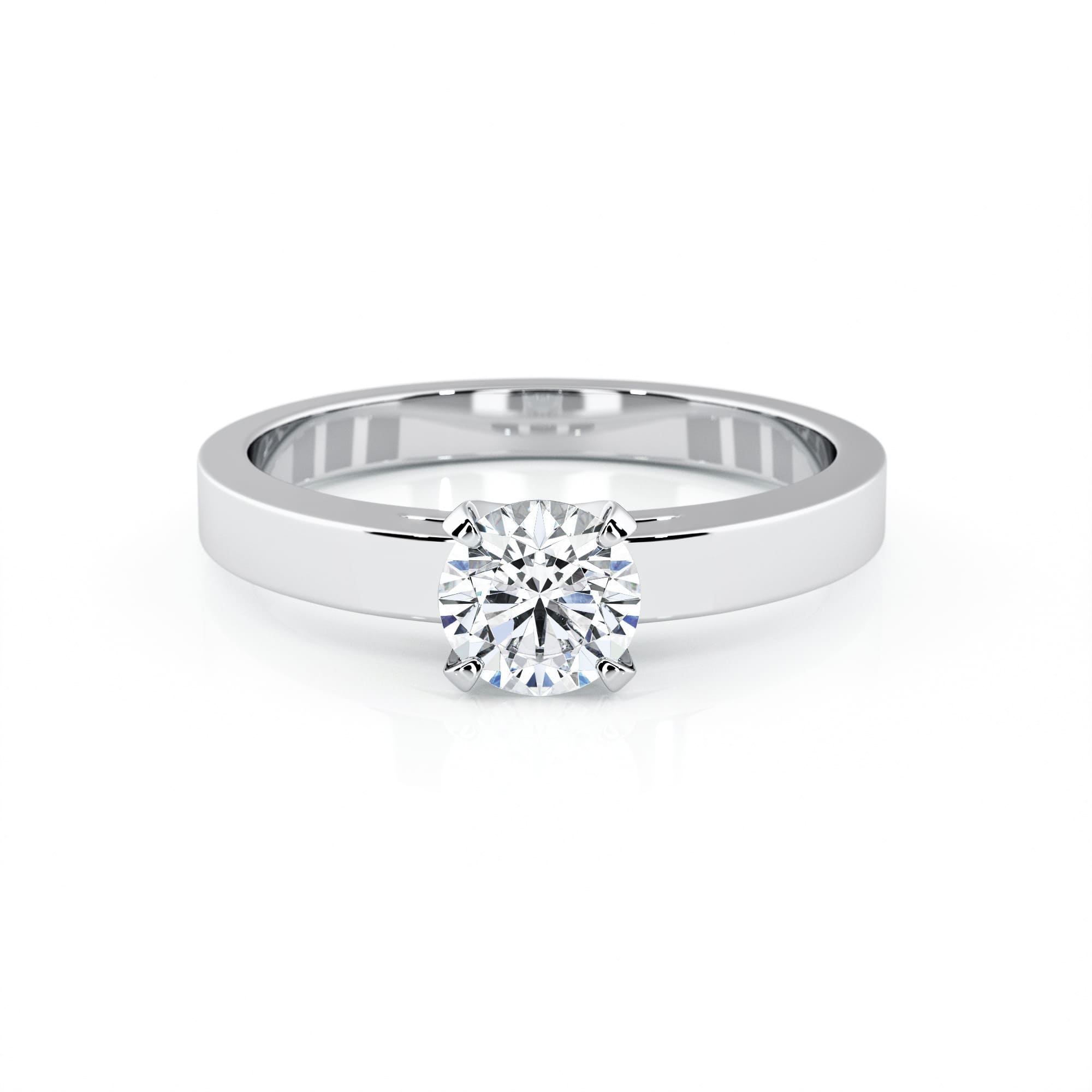 Solitaire diamond cradle with 4 claws. Solitaire offered in 18k white, yellow or pink gold (750/000) or in platinum 950/000. Gold weight: +/- 3 or 4 grs depending on the diamond chosen and the ring size. French made. Our jewels are set in France by French know-how setters to guarantee quality and solidity. Width of the ring in proportion to the diameter of the diamond chosen, for example 2,3 mm wide for a diamond of 5 mm in diameter (0.50 carat).