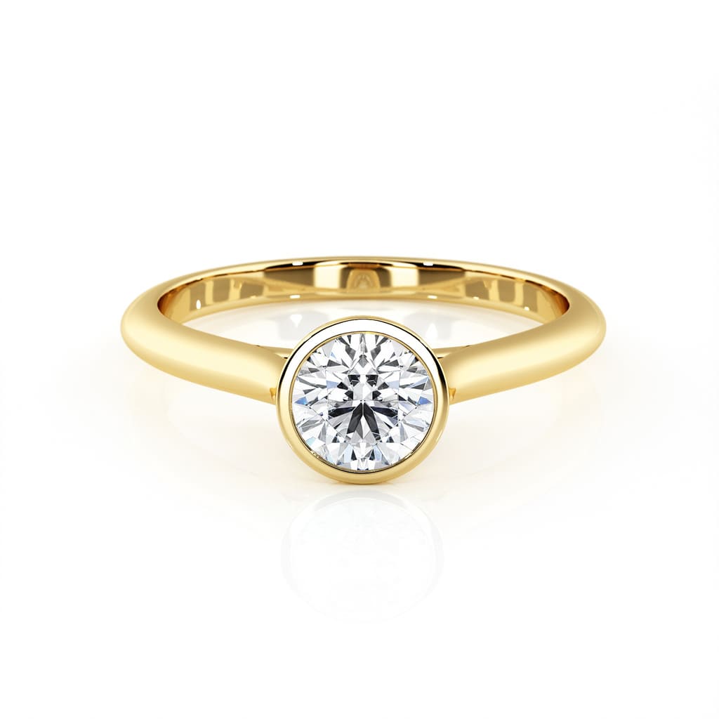 Delicately bezel-set diamond solitaire. Model available in 18-carat white, yellow or pink gold (750/000) or in platinum (950/000). French made. Handmade to measure, this bezel set diamond solitaire in gold is delivered in a luxury box. Our jewels are set in France by setters with French know-how to guarantee quality and solidity.Gold weight: +/- 2 to 3 grams depending on the chosen diamond and the size of the finger. Width of the ring in proportion to the diameter of the chosen diamond. For example for a diamond of 5 mm in diameter (0.50 carat), the width of the ring is 2 mm wide.