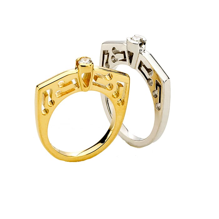 This diamond ring named BLUE NOTE is bright and sparkling like Mozart notes. A ring with a different style, simple but elegant. A diamond ring that brings music in your life. A diamond ring does not need to be big to make a great impression. Style is everything. Gold weight approx 5.5 gr., width 2mm. Music in the air. Design by Sandro Pignotti from San Remo for i-diamants.