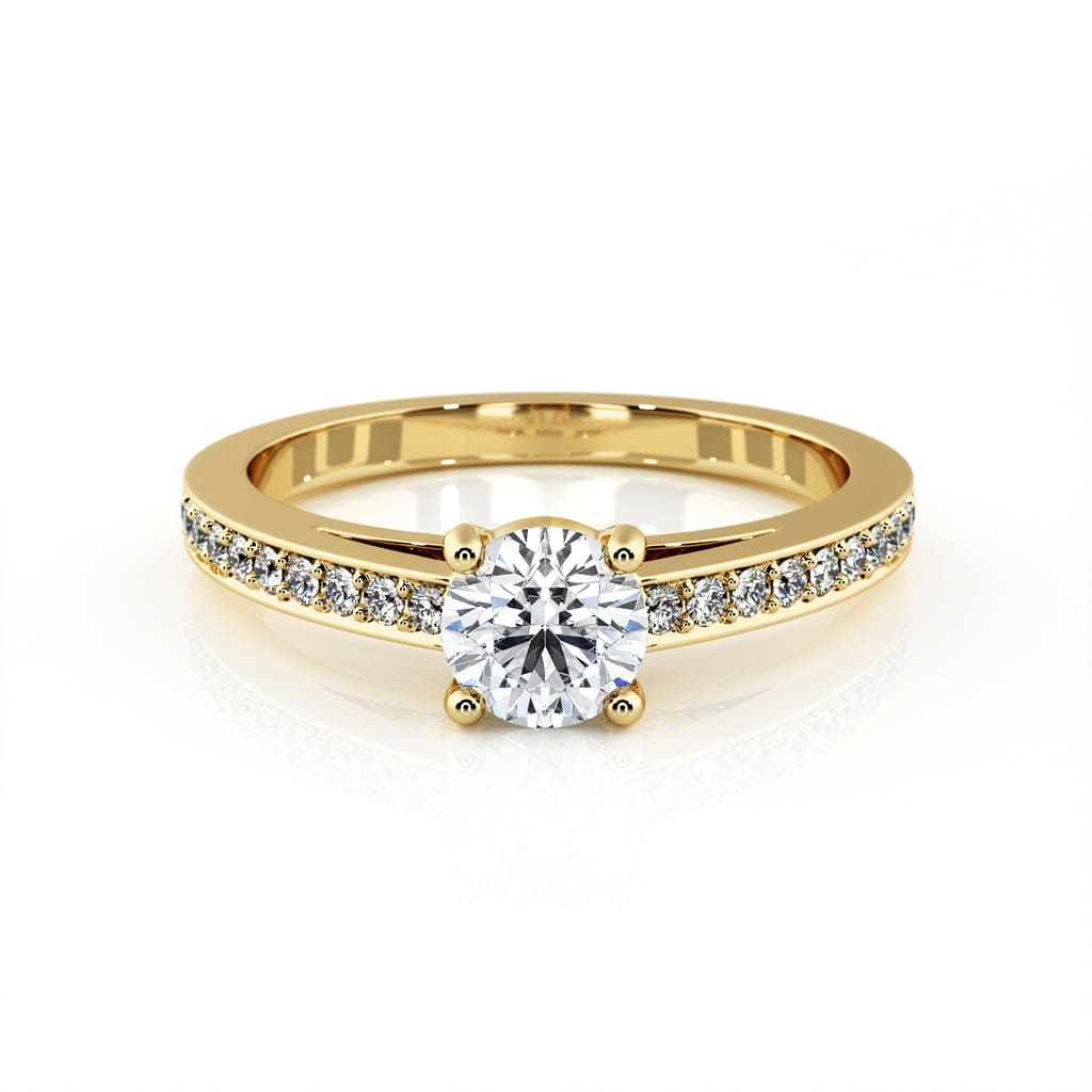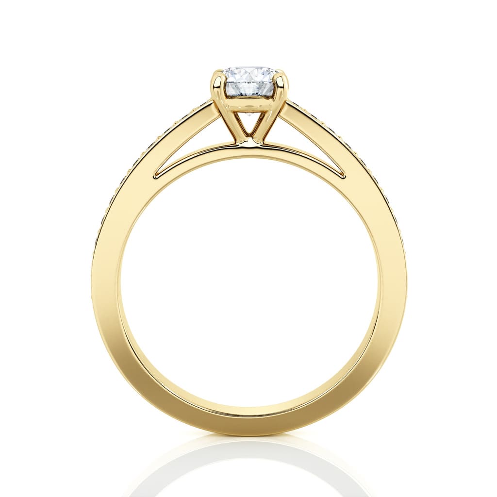 Diamond Yellow Gold Engagement ring 4 claws and diamond band