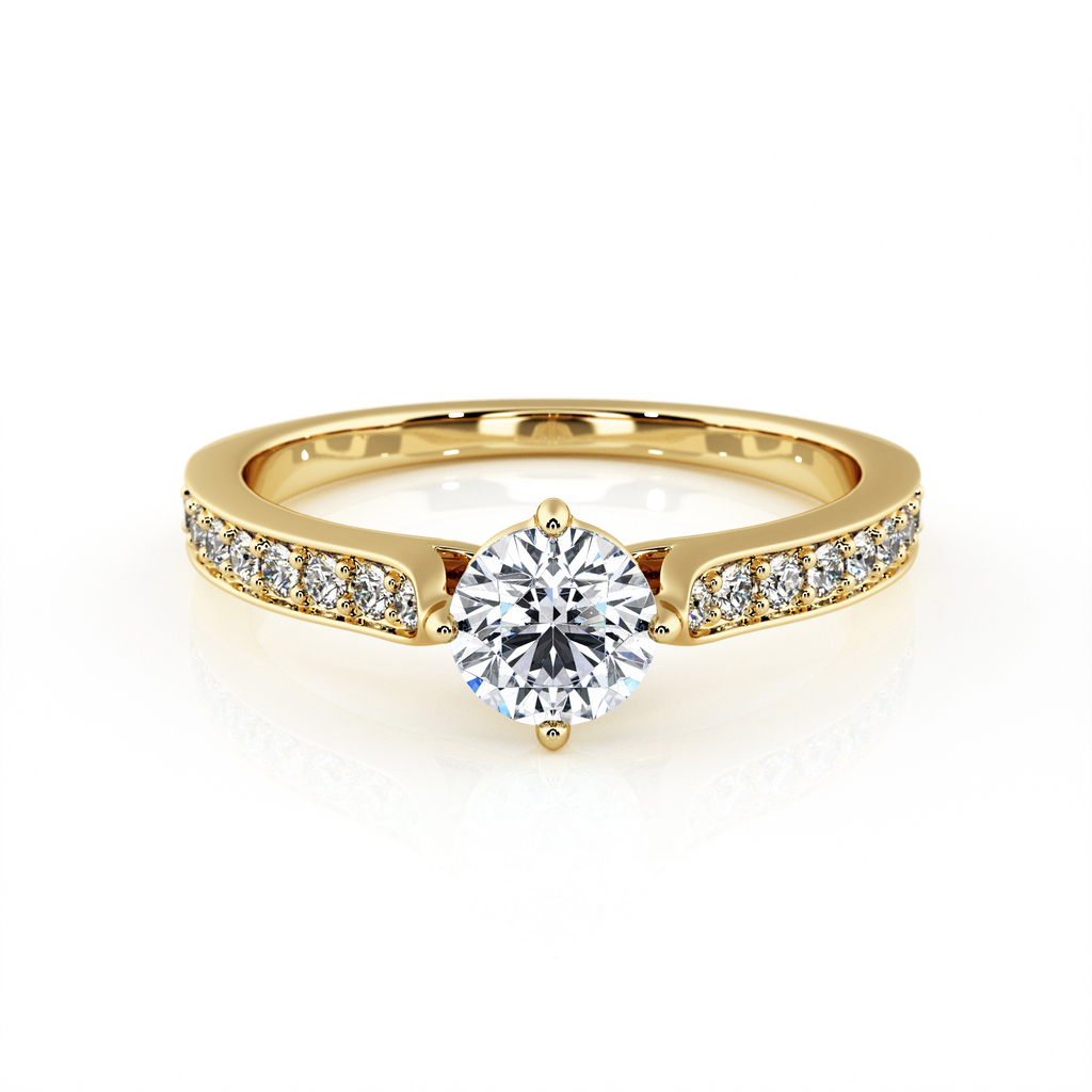 Diamond Yellow Gold Engagement ring 4 claws cross and diamond band