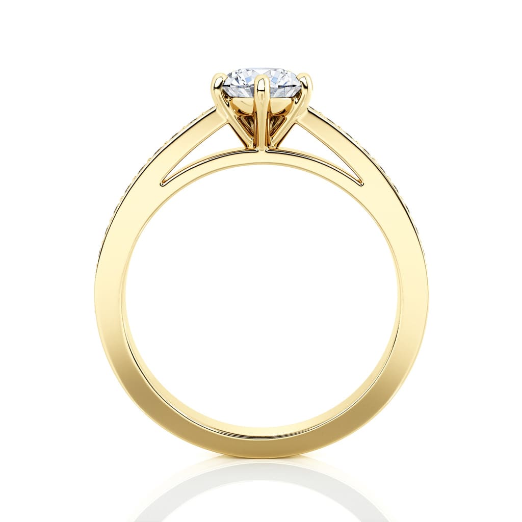 Diamond Yellow Gold Engagement ring 5 claws and diamond band