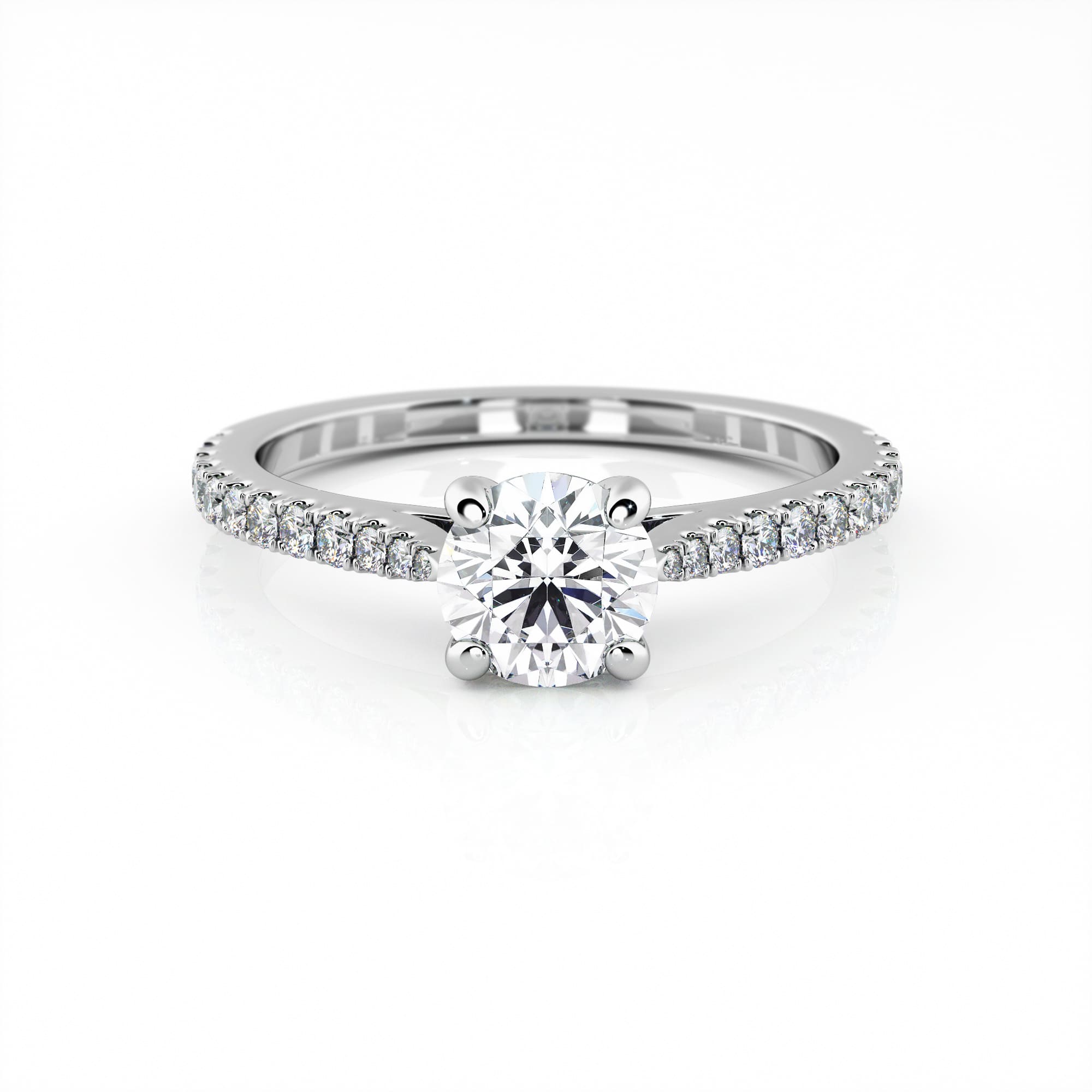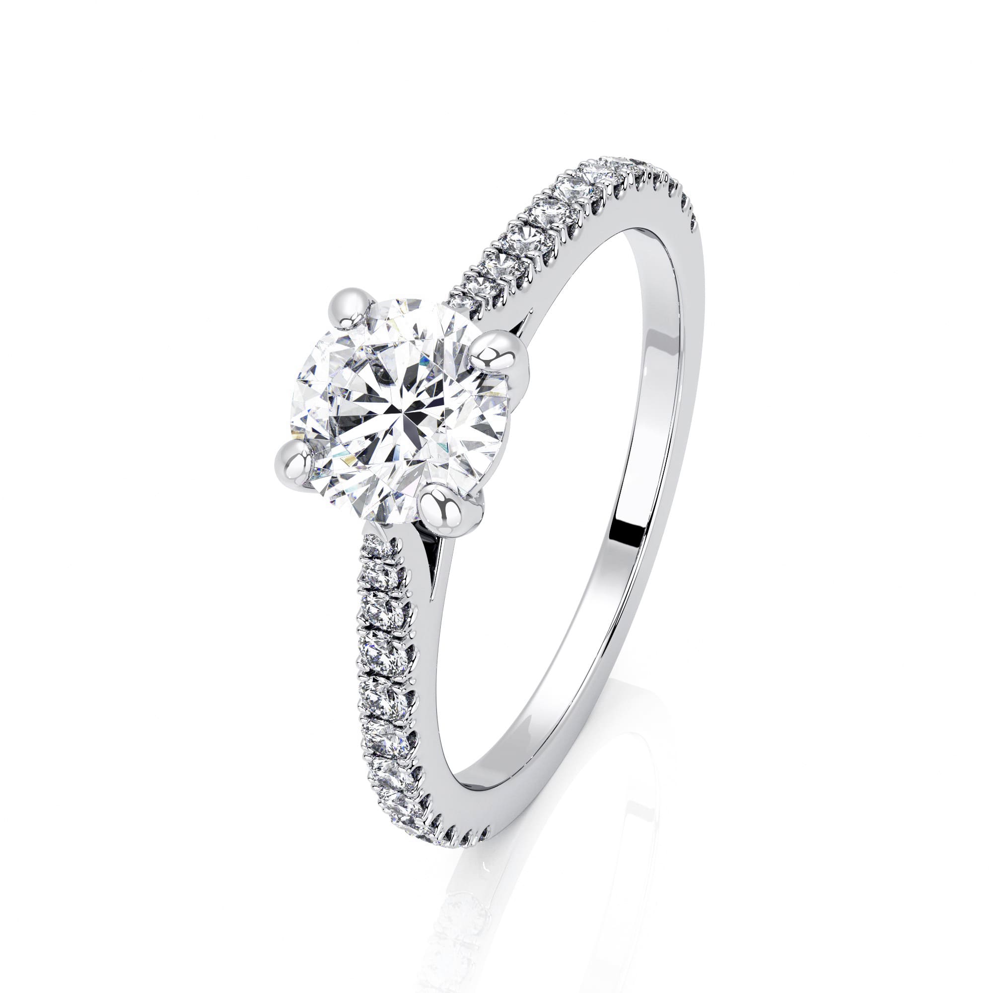 Our jewels are set in France by setters with French know-how to guarantee quality and solidity. Ring set with pavé diamonds on each side of the center diamond and a total weight of +/- 0.20 carat depending on the weight of the center diamond. Paving quality: color F and purity VS. Width of the ring in proportion to the diameter of the diamond chosen and the paving diamonds, for example a ring of 2mm wide for a diamond of 5mm in diameter (0.50 carat).