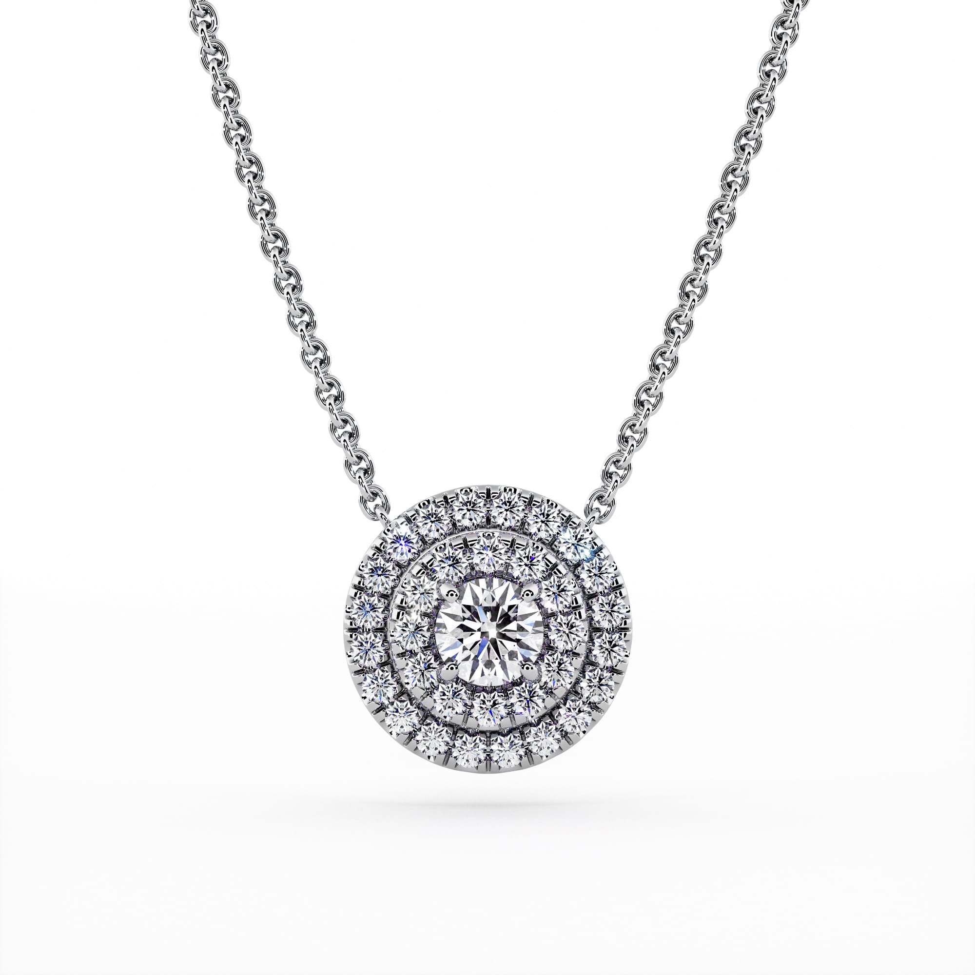Diamond Pendant & Necklace Double Circle of Diamonds, selling price according to carat and diamond quality