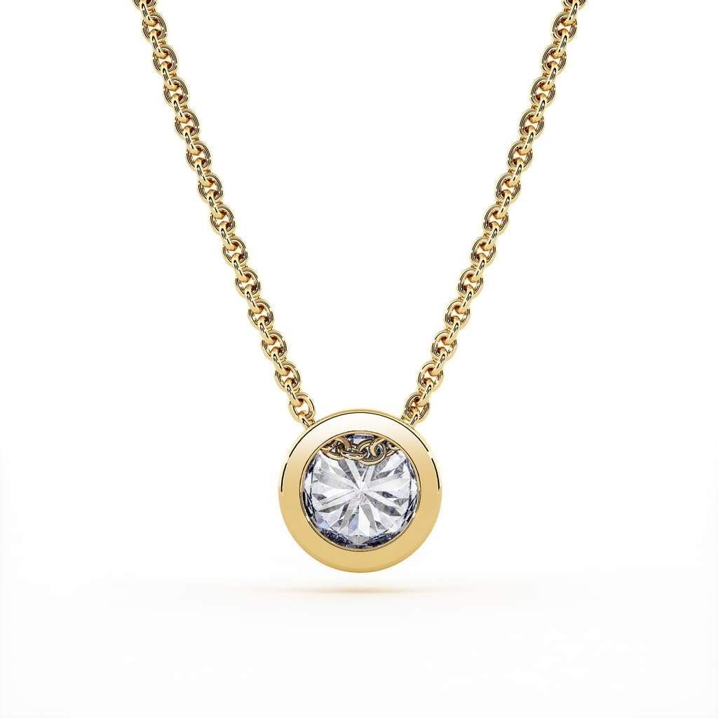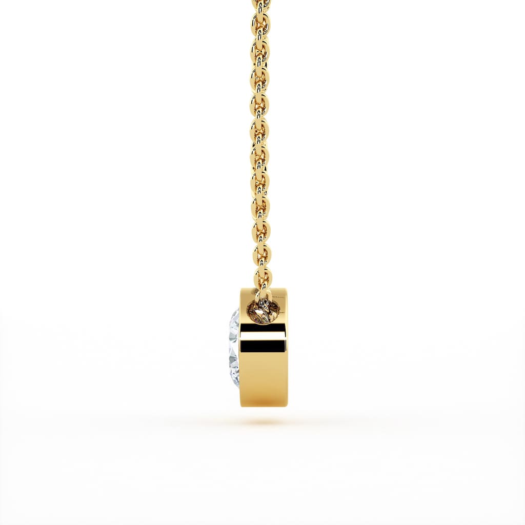 Bezel set diamond pendant. This setting technique makes it possible to increase the visual volume of a diamond by the volume effect rendered by the 18 carat gold (750/000) all around the stone. A well-cut diamond shines just as well in a prong setting as in a bezel setting. Setting carried out with great care for good maintenance of the diamond over time. Our jewels are set in France by setters with French know-how to guarantee the quality and solidity of the setting.