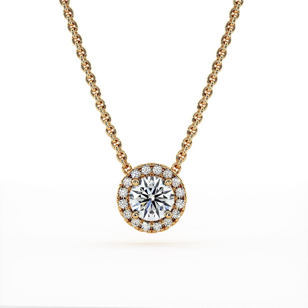 Diamond Yellow Gold Pendant & Necklace Paved Round Brilliants