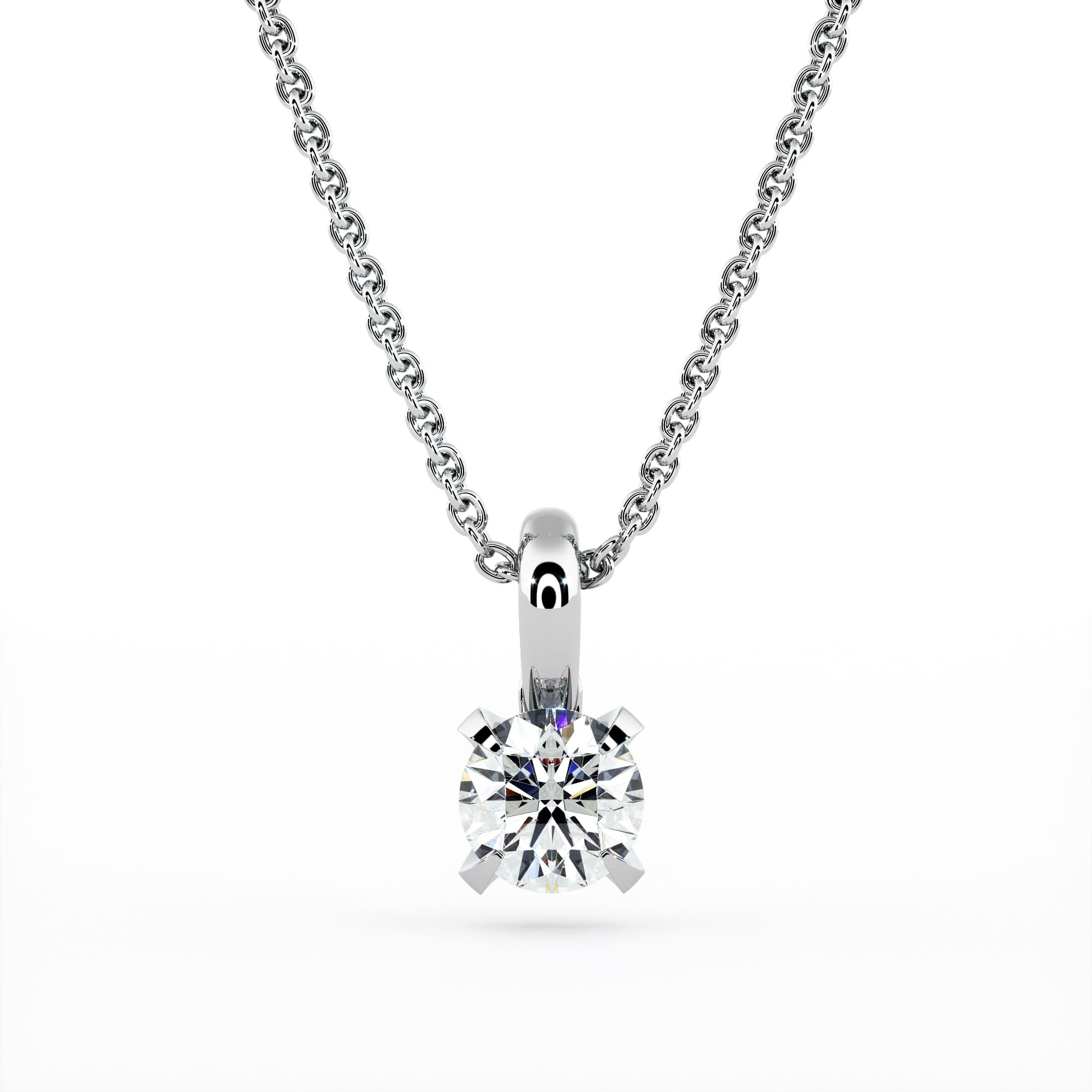 Solitaire pendant with claws, with a pivoting bail with invisible fixing which ensures an always perfect fall. Crimping and French manufacturing. A jewel designed to be stable and not turn. Classic cable chain. Lobster clasp. Weight and quality of the diamond according to your choice. Exclusively natural diamonds whose quality is certified by GIA, HRD or IGI.