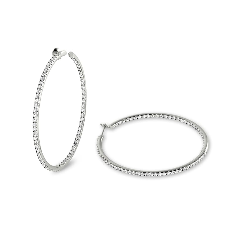 L'or blanc, couleur intemporelle et parfaitement assortie au diamant de votre bijou Boucles d'Oreilles Or Blanc Diamant CREOLES 3.5 cm