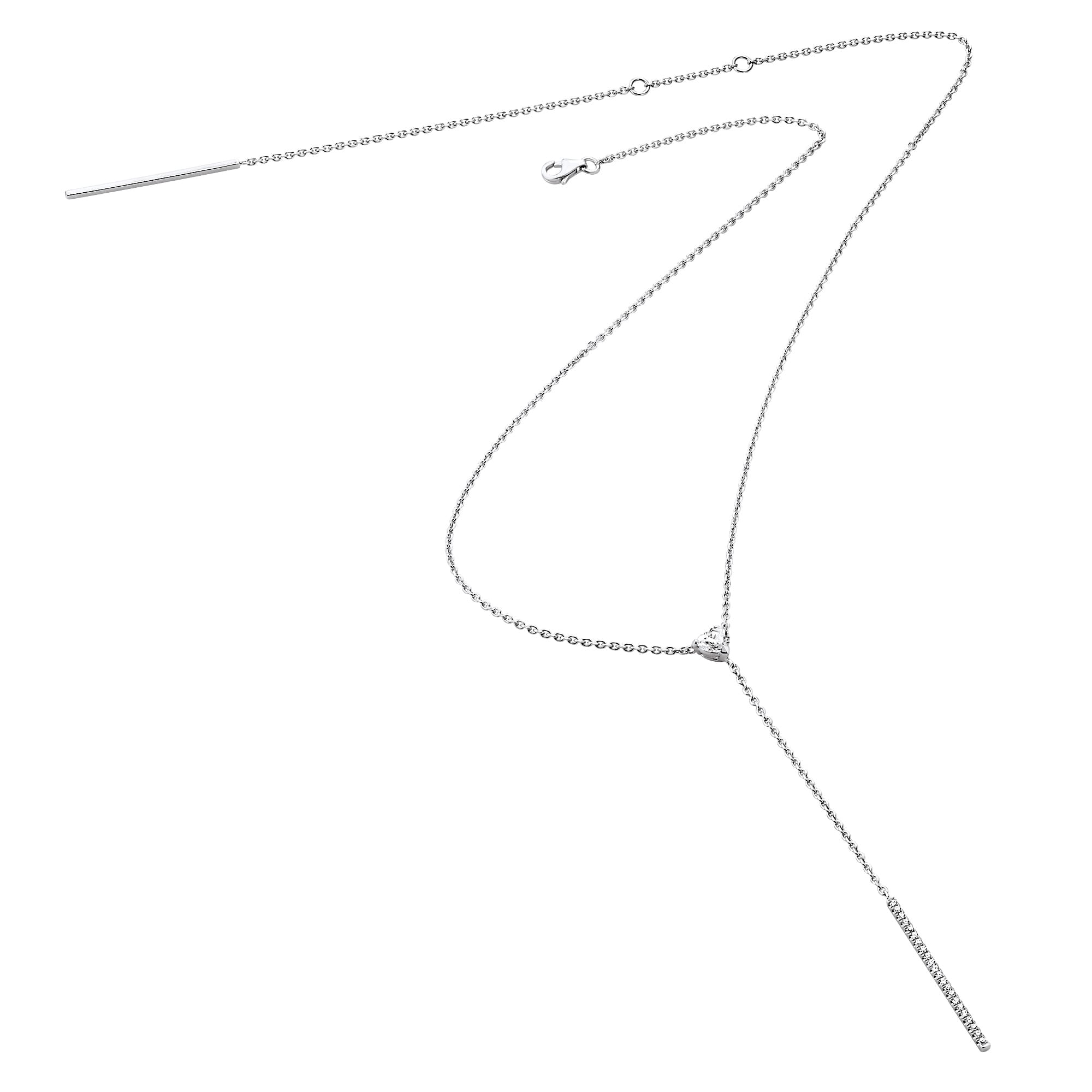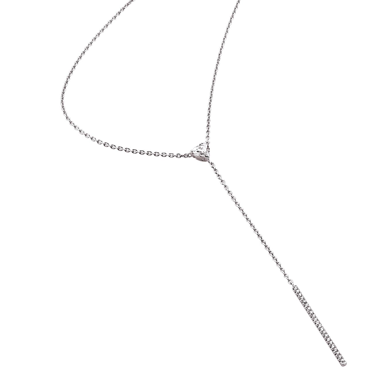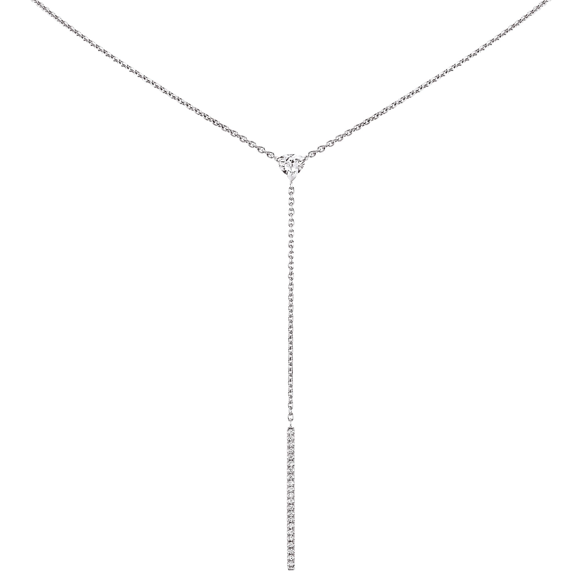 Collier diamant "A COEUR JOIE" avec au centre un diamant de la romantique taille coeur, prolongé à l'avant d'une chaîne avec au bout une aiguille "balance" sertie de 0,20 carats de petits diamants et à l'arrière (optionnel, photo agrandissement N°4) une aiguille "balance" en or pour accentuer un décolleté plongeant dans le dos. Modèle présenté avec diamant taille coeur 0,50 carat G VS1 certificat GIA N 2146077894 qualité de taille "very good" "very good" Ce collier diamant peut être réalisé également avec le plus classique diamant taille brillant rond, un diamant taille "coussin", ovale ou taille poire (goutte). Nous contacter pour un devis. Fabrication française. Or blanc ou or jaune 18 carats 750/000 approx 5,5 grammes.