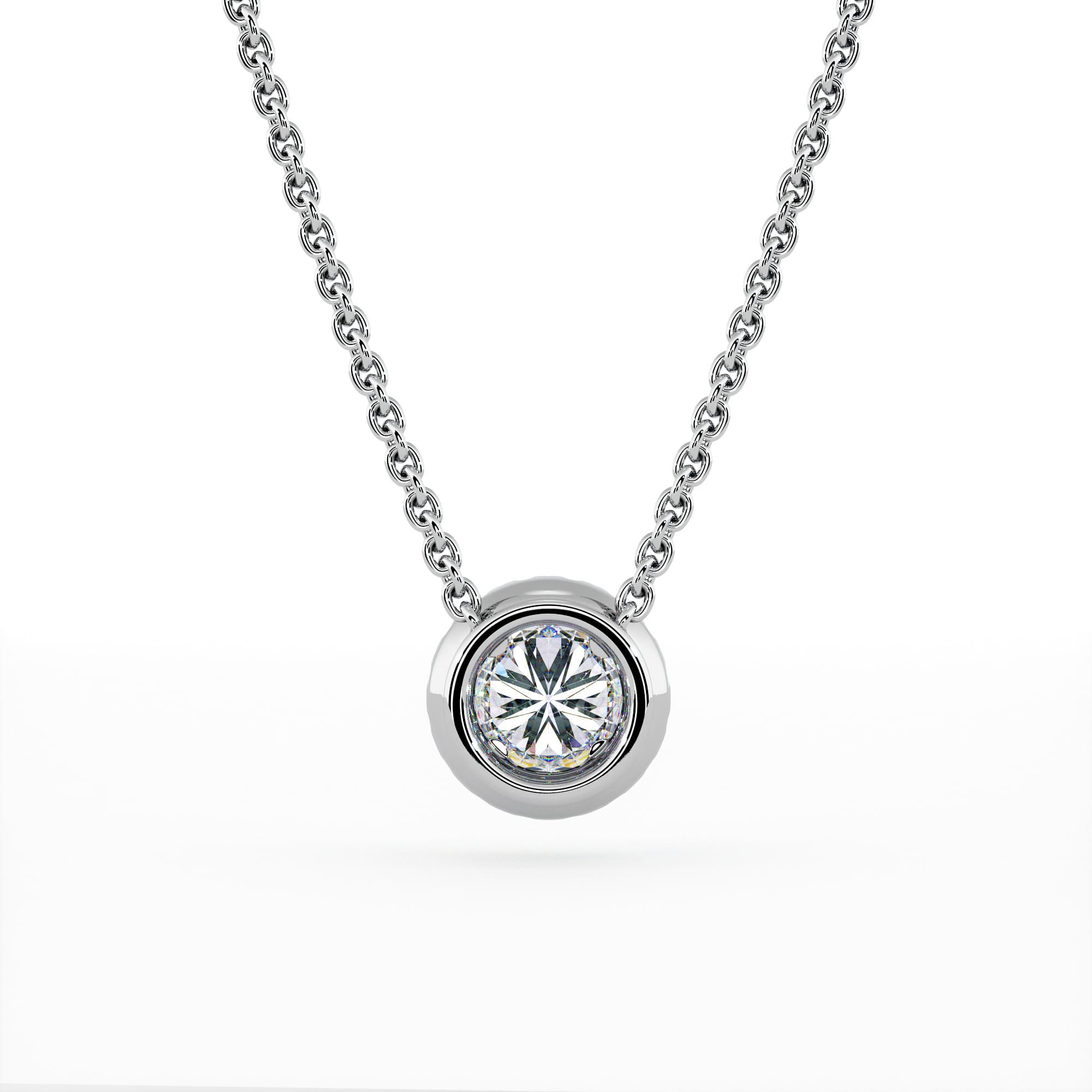 Fabrication française sur mesure, en or blanc, jaune ou rose 18 carats (750/000). Poids d'or : +/- 3 à 3,5 grammes selon la taille du diamant. Chaîne maille forçat traditionnelle. Fermoir mousqueton. La longueur standard de la chaîne est de 42 cm mais elle peut être adaptée sur demande. L'épaisseur de la chaîne est de 1,1 mm pour des diamants d'un poids inférieur à 0,50 carat et de 1,3 mm pour des diamants d'un poids supérieur à 0,50 carat, mais elle peut être également adaptée sur demande.