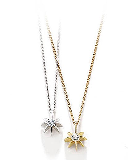 Pendentif Diamant SOLEIL BRILLANT Diamant serti dans un écrin de rayons de soleil qui s'appuie parfaitement sur le buste. Pendentif diamant avec chaîne forçat en or assortie (longueur standard 42 cm, ou ajusté sur mesure sur demande). Approx 4,5 gr or. Créateur de bijoux et poète étoilé SANDRO PIGNOTTI Ami de i-diamants "E lucevan le stelle ... E non ho amato mai tanto la vita!" Tosca acte III