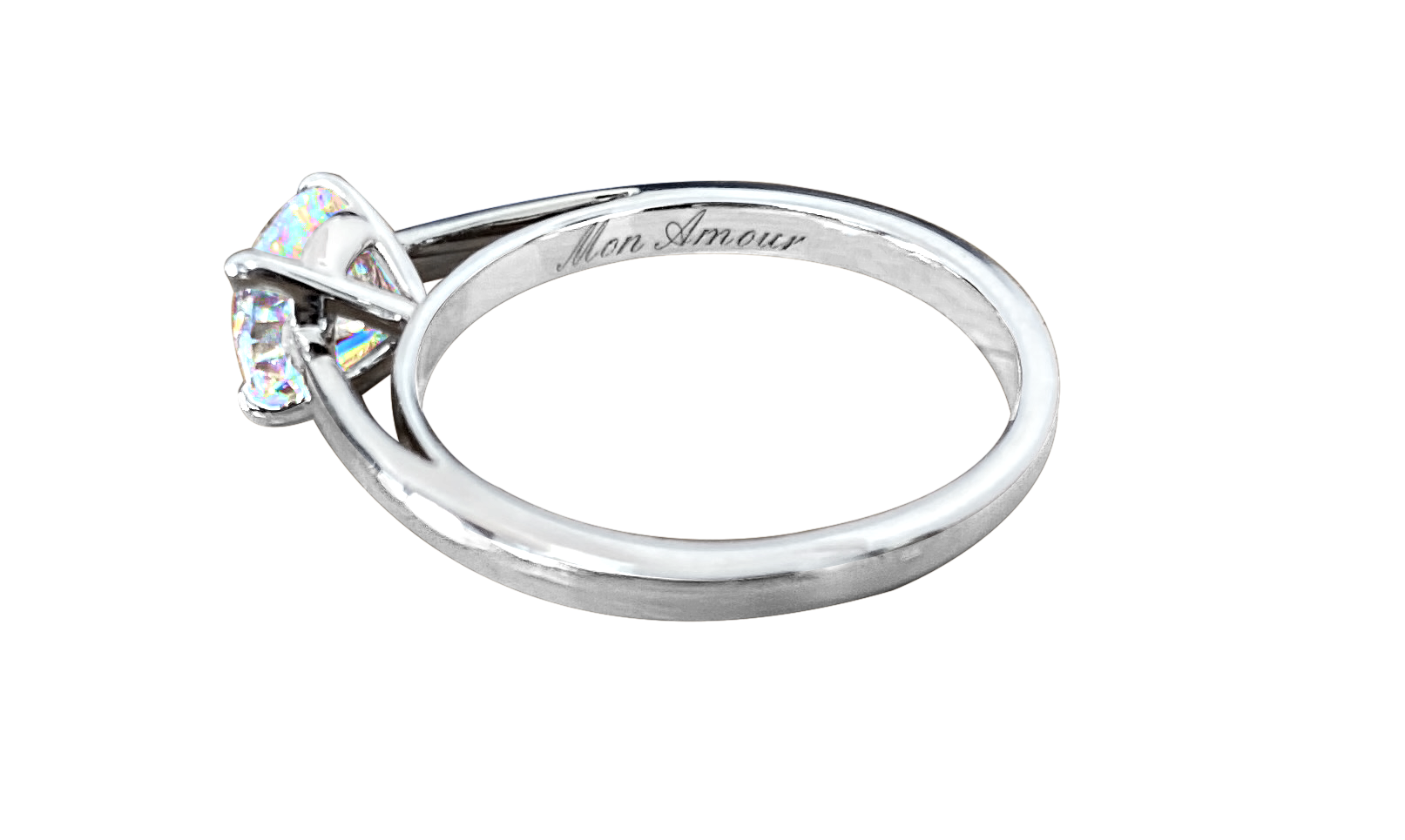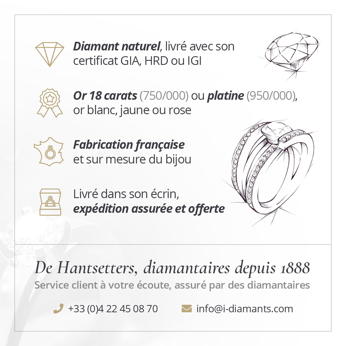 Gravure du bijou optionnelle (N.B : aucune gravure ou logo i-diamants) Serti d’un diamant naturel, certifié et gravé, au choix en étape 2/3 de cette page
