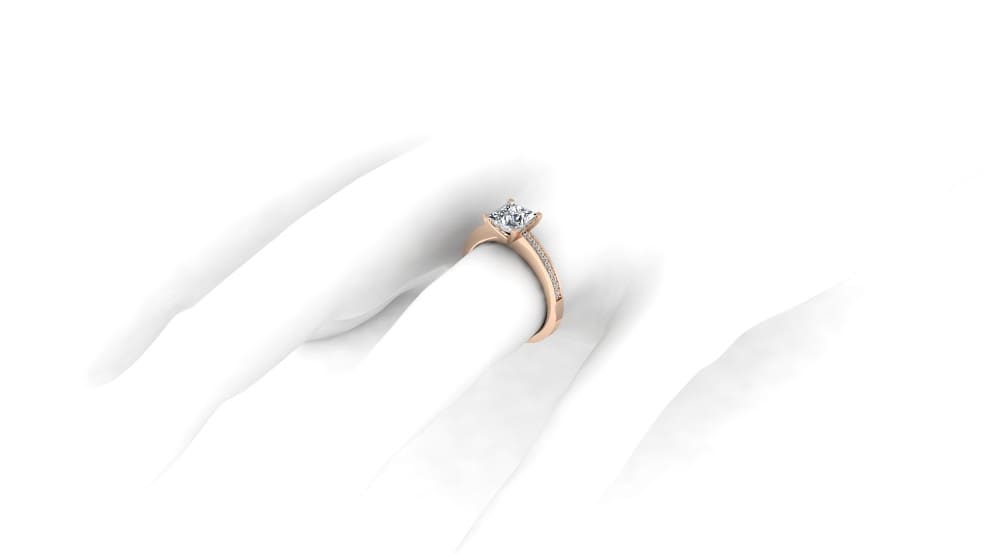 Solitaire avec diamant princesse certifié GIA, IGI ou HRD. Un style plein d’éclat sans être ostentatoire. Pour célébrer l'aube d'une romance passionnée et raffinée. Entourage de diamants de 0,20 carat total (pavage de 2 x 10 diamants de chaque côté du diamant taille princesse au centre). Solitaire fait main sur mesure selon choix du diamant taille princesse. Fabrication française. Or blanc palladié ou or jaune : 18 carats (750/000). Poids d'or : 3 à 4 grs selon diamant et tour de doigt. Voir VIDEO en-dessous des photos. La gravure "i-diamants" est optionnelle. Voir aussi notre Alliance diamant Princesse